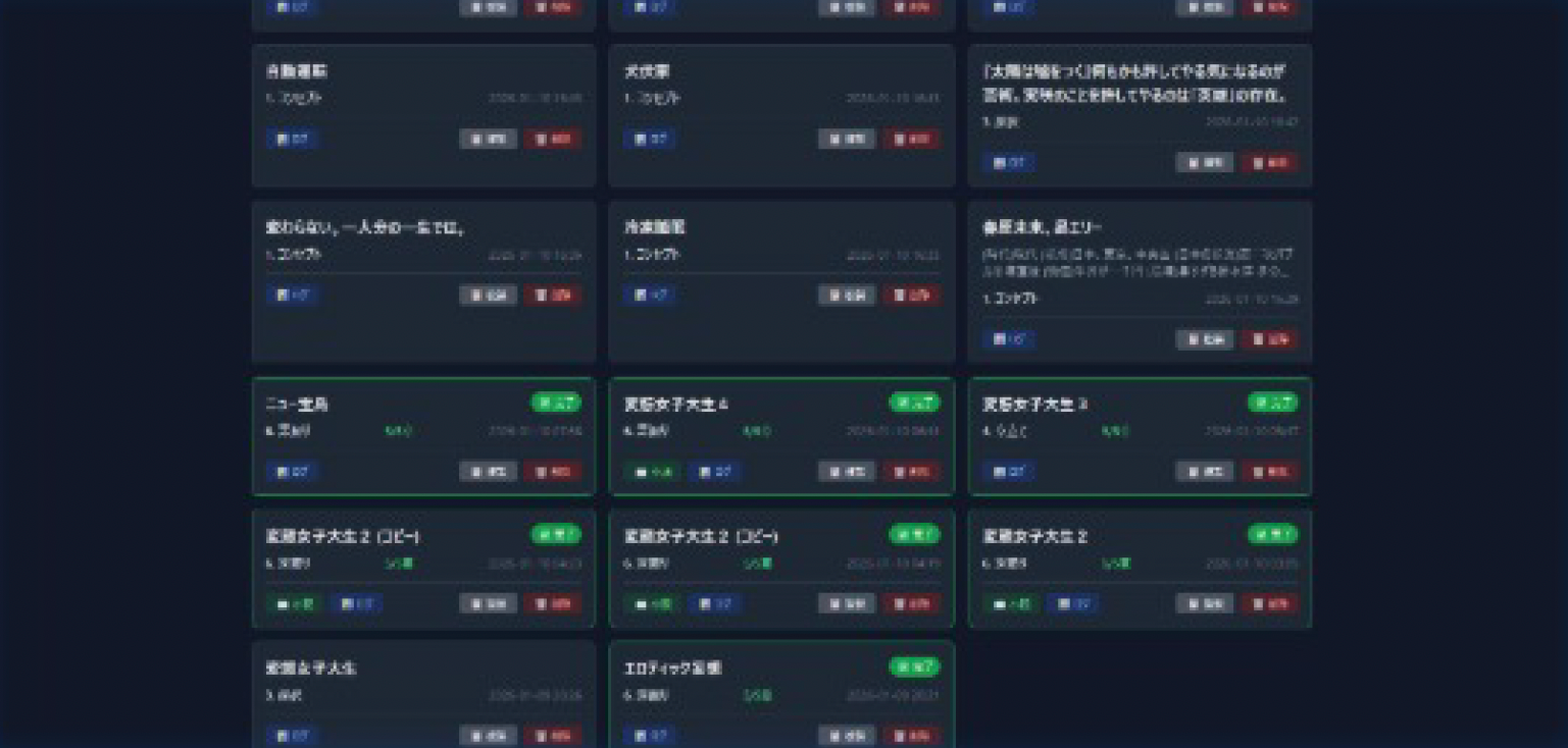 作品一覧 - 進捗状況が一目でわかるカードレイアウト