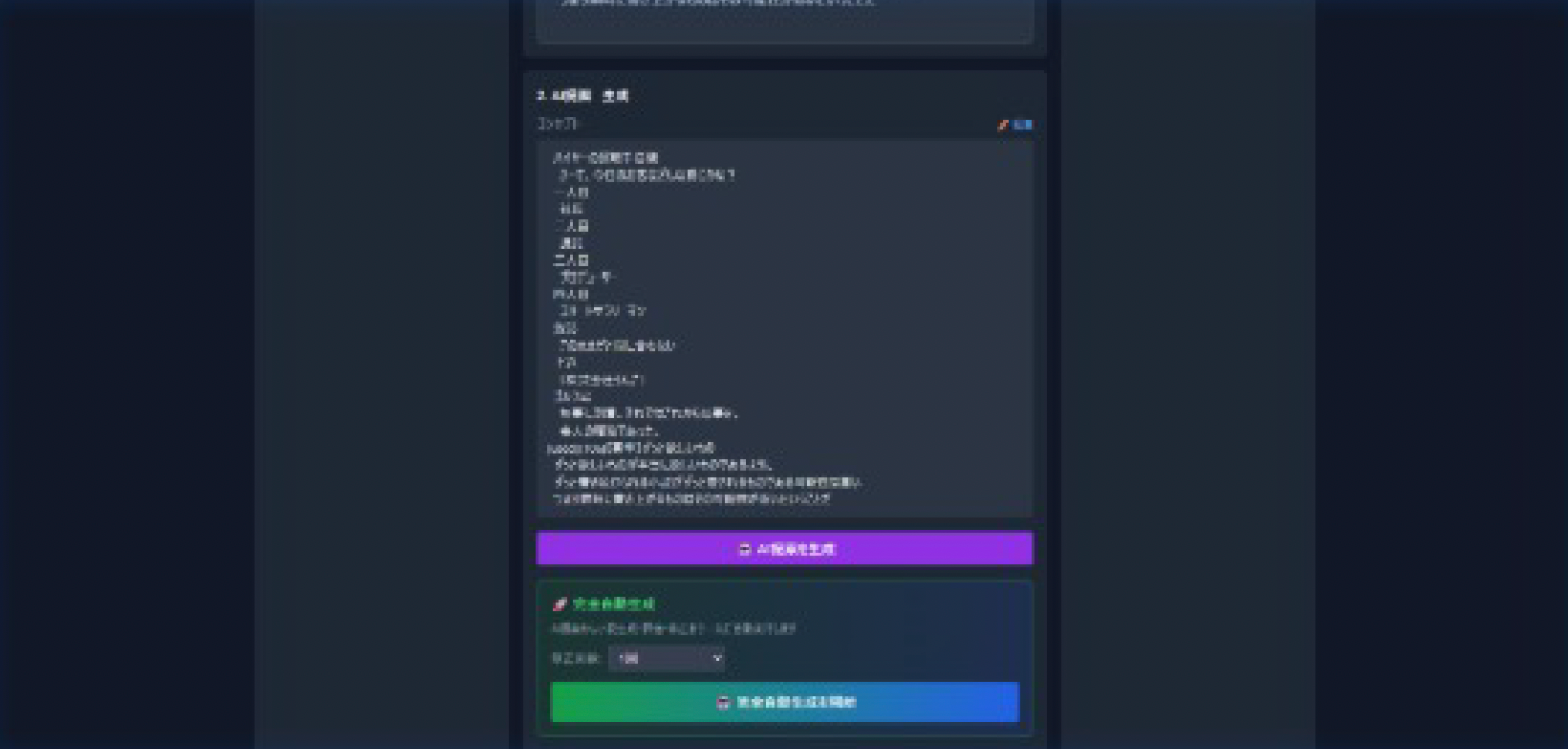- ・提案→選択→章立て→深掘り→小説生成を自動実行