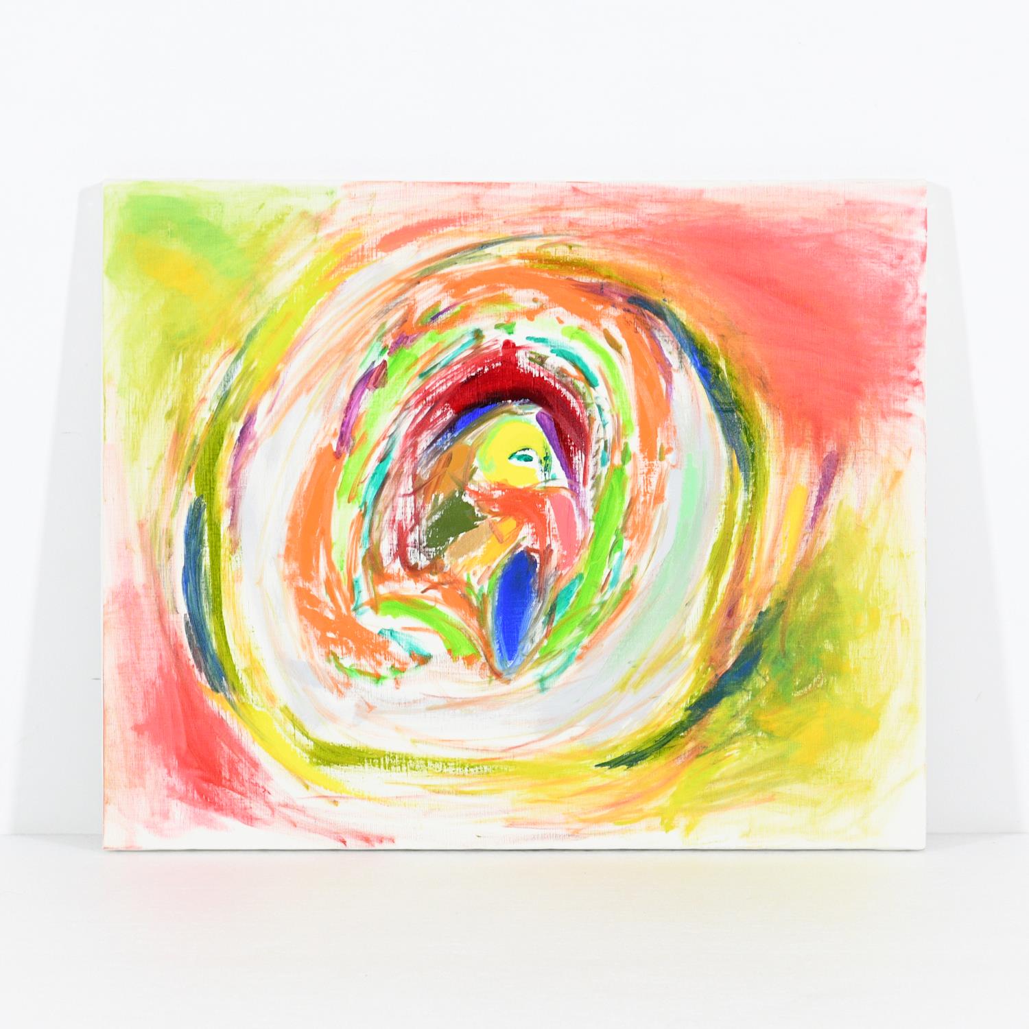 本作は、具象的な描写を避けながらも、色のレイヤーと動きだけで“温泉の空気感”を描こうとする抽象表現主義的作品です。