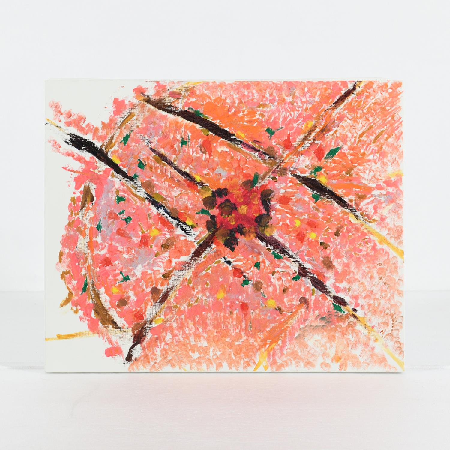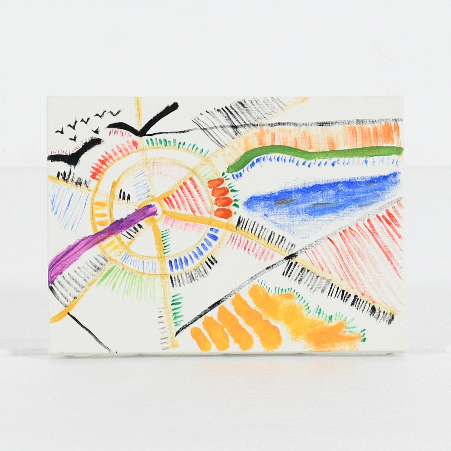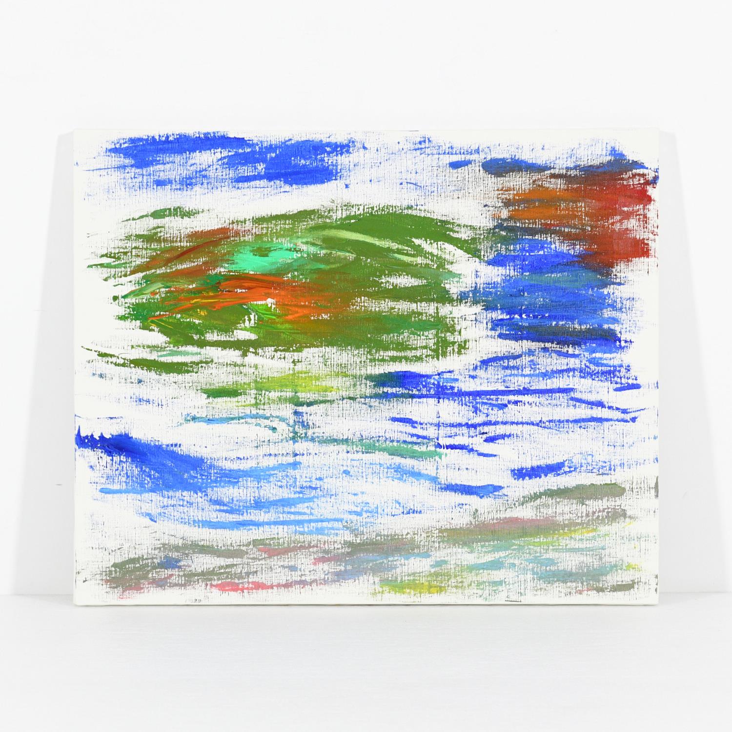 筆致は荒々しく、ストロークはほぼ即興的でありながら、絵全体には「湯気」「水面」「地熱の色彩」といった自然のエッセンスが漂っています。