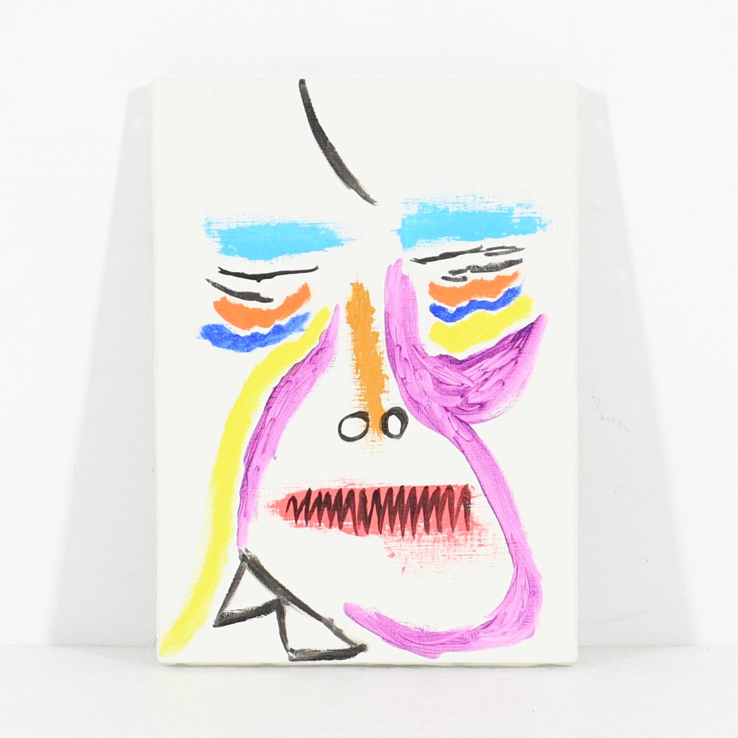 しかし、肖像画の構造(額・頬・顎)だけが抽象的ブロックで再現されている点が特徴です。